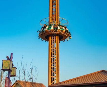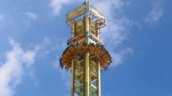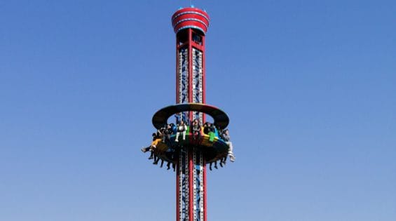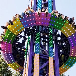 LED Lighting: To increase the attraction’s visibility and appeal, the ride was equipped with color-changing LED lights that illuminate the tower at night. This not only enhances the visual appeal but also creates a captivating light show that draws attention from across the park.