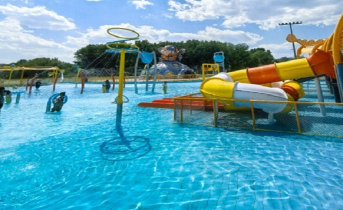 Splash pads, mini slides, tipping buckets, and interactive water features, covering 200–600 m², are essential for family engagement and safety compliance.